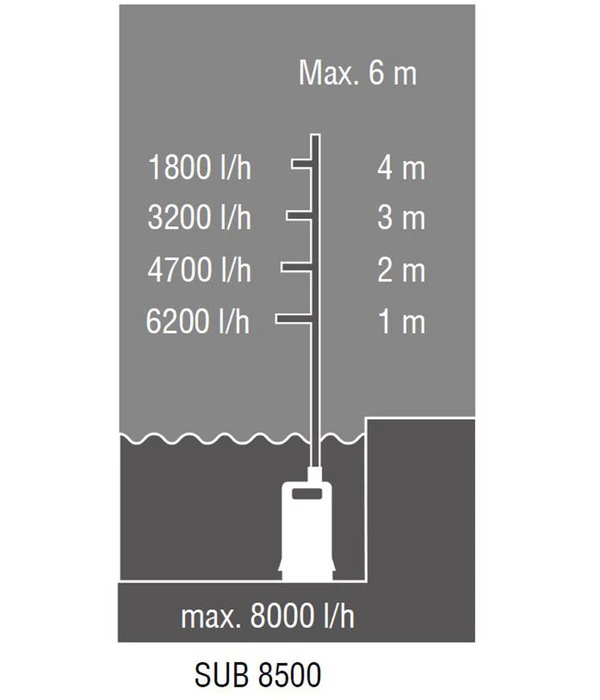 Das kraftvolle Spitzenprodukt aus dem Hause AL-KO schafft eine Fördermenge von 8000 Litern pro Stunde bei einer Förderhöhe von bis zu 6 m. Die SUB 8500 Easy besitzt einen Trockenlaufschutz und kann, dank des einstellbaren Schwimmschalters, im manuellen Dauerbetrieb laufen. Die rostfreie INOX-Pumpenwelle sorgt zudem für einen ruhigen Lauf und eine einfache Handhabung. Hervorzuheben ist außerdem die praktische Ausstattung der Tauchpumpe SUB 8500 Easy von AL-KO mit einem Kombinationsanschlussstück am Pumpenauslass für verschiedenes Zubehör. Hinweis: Die AL-KO Tauchpumpe SUB 8500 Easy ist speziell für Brauchwasser und chlorhaltiges Wasser aus einem Schwimmbad konzipiert. Statten Sie sich nun am besten sofort mit der AL-KO Tauchpumpe SUB 8500 Easy aus, indem Sie dieses ausgezeichnete Accessoire direkt bestellen!