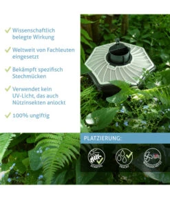 Sie haben einen Garten, Sie lieben Ihre Terrasse und würden dort auch gerne entspannte Sommerabende verbringen. Allerdings halten Sie die vielen, lästigen Stechmücken meist genau davon ab. Wenn Sie jedoch eine Biogents BG-Mosquitaire Mückenfalle dort aufstellen, kann sich das Problem schon bald in Luft auflösen. Das Gerät arbeitet mit einer patentierten Wirkweise, mit der die üblichen Stechmücken und sogar Tigermücken angelockt und gefangen werden. Und dies so zuverlässig, dass Sie nach einiger Zeit die Mückenpopulation reduzieren und damit sogar den Brutzyklus durchbrechen können. Es wird Sie sicherlich auch freuen zu hören, dass die Falle völlig ungefährlich für Nützlinge ist, da sie mit ihren Mechanismen rein auf die lästigen Plagegeister abzielt. Außerdem ist der beiliegende BG-Sweetscent Lockstoff absolut unbedenklich, also kein Insektizid. Bekämpfen Sie damit einfach genau die Tierchen, die Ihnen das Leben draußen schwer machen – sonst nichts. Holen Sie sich eine Biogents BG-Mosquitaire Mückenfalle, dann gehört Ihre Terrasse schon bald wieder Ihnen!