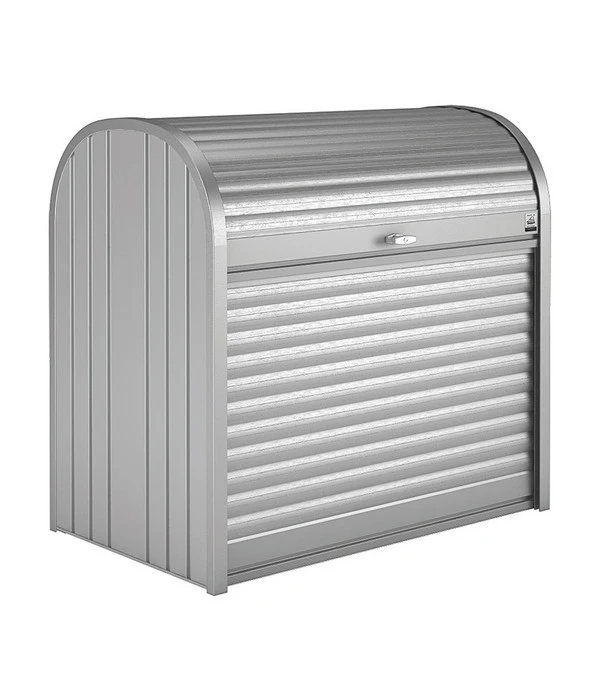 Sie suchen eine neue Unterstellmöglichkeit für Ihre Mülltonnen, möchten Ihre Gartengeräte witterungsbeständig verstauen oder brauchen generell etwas mehr Stauraum in Ihrem Außenbereich? Wenn Sie keinen Schuppen zur Verfügung haben oder einfach nur eine moderne Aufbewahrungsmöglichkeit für draußen suchen, ist der StoreMax® 120 von Biohort die ideale Wahl. Die stabile Rolladenbox bietet Ihnen maximalen Stauraum bei kompakten Abmessungen und macht in oder vor Ihrer Garage eine ebenso gute Figur wie in Ihrer Einfahrt. Dank des zweigeteilten Öffnungssystems und der leichtgängigen Rollladen mit Federunterstützung lässt sich Ihr Rasenmäher genauso gut verstauen wie Abfallbehälter oder Gelbe Säcke.