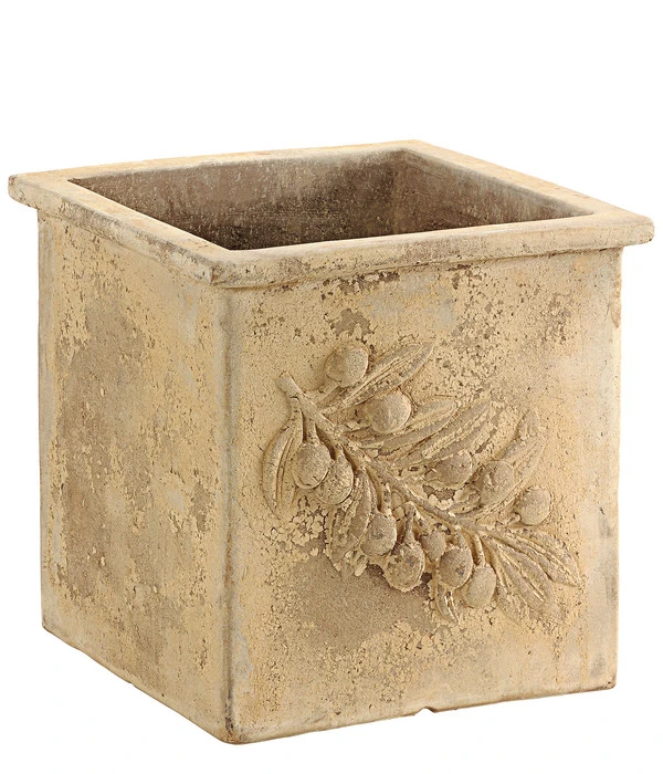 Sie lieben es, Ihren Garten elegant und edel zu dekorieren? Dann ist dieser Dehner Terrakotta-Topf genau das Richtige für Sie! Er passt sowohl zum Antik-Look als auch zu einem mediterranen Stil und verbreitet überall seinen ganz besonderen Charme. Das erhabene Ornament in Form eines Olivenzweiges ist ein wunderschönes Detail, das den Topf noch mehr in Szene setzt. Durch das praktische Ablaufloch im Blumentopf-Boden können Sie Staunässe ganz einfach und problemlos vermeiden. Bitte verwenden Sie aber für den Einsatz des Kübels im Innenbereich einen Untersetzer.