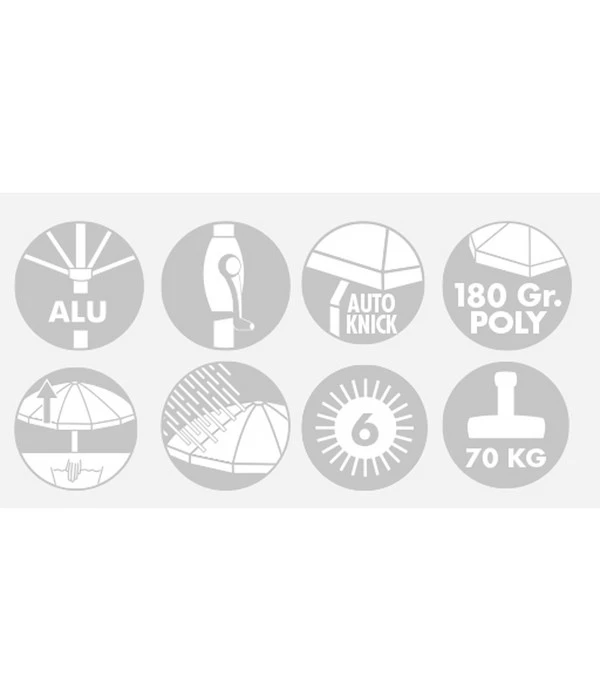 Auch optisch gibt der Doppler Kurbelschirm ‚Expert Auto Tilt‘ durch sein modernes Design eine gute Figur ab, ganz problemlos integrieren Sie das ansprechende Garten-Accessoire in Ihre bestehende Einrichtung im Außenbereich. Während des Einsatzes sorgt der höchste UV Schutz UV 80 (Standard 801) dafür, dass selbst empfindliche Hauttypen zuverlässig vor Sonnenbränden bewahrt werden. Unter dem Schirm, der einen großzügigen Durchmesser von 320 x 320 cm besitzt, finden problemlos mehrere Personen Platz.