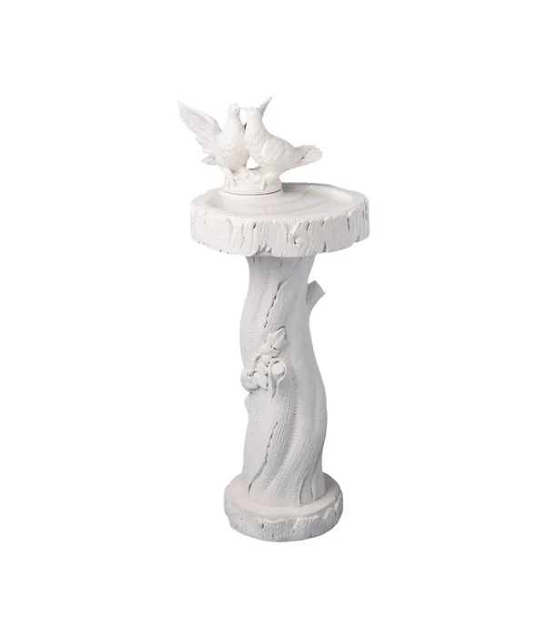 Ein wahrlich stilvoller Platz für Vögel um zu rasten und den Durst zu stillen: Die Vogeltränke für den Garten weiß mit aufwendiger, romantisch anmutender Gestaltung zu überzeugen und ist ein besonderer Blickfang in Ihrer Gartengestaltung. Zudem bietet die Tränke den gefiederten Gästen in Ihrem Garten stets erfrischendes Wasser. Gefertigt wurde sie aus weiß-grauem Kunststein. Da sich das Material u.a. durch Frostbeständigkeit auszeichnet, können Sie die Tränke wunderbar auch bei kälteren Temperaturen für den Garten verwenden.