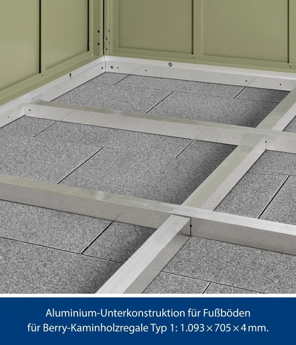 Mit der Hörmann Unterkonstruktion für Fußböden geben Sie Ihrem Berry-Kaminholzregal den perfekten Unterbau. Sie schaffen eine optimale Belastbarkeit für den Riffelblechboden und schützen ihn dadurch vor Beschädigungen. Hergestellt aus robustem Aluminium bietet die Konstruktion eine zuverlässige und stabile Grundlage für Ihr Regal. Egal, ob Sie das Regal als Lagerfläche oder als dekoratives Element nutzen, die Unterkonstruktion sorgt dafür, dass es sicher und belastbar steht.