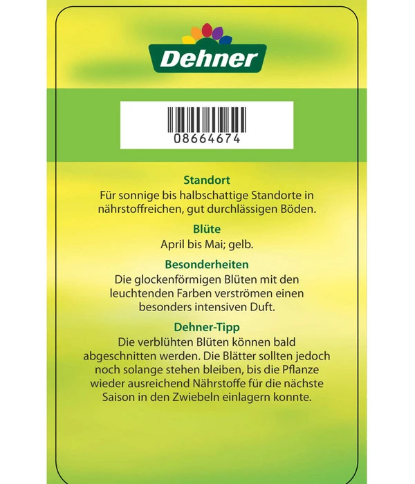 Endlich hat sich der Winter verabschiedet und Sie erfreuen sich am frischen Grün in Ihrem Garten. Begeistert sind Sie jedoch vor allem von Ihrer Kaiserkrone, die Sie mit einigen „Kollegen“ als Gruppe in Ihr sonniges Staudenbeet gepflanzt haben. Sie hat sich bereits im April so weit entwickelt, dass sie Ihnen voller Stolz ihre imposante Krone präsentieren kann. Diese eindrucksvolle Blütenkrone besteht aus vielen Einzelblüten in dekorativer Glockenform, die sich kranzförmig um den Stiel herum legen und bis in den Mai hinein für Sie erstrahlen. Ein weithin sichtbares Highlight dank der Wuchshöhe von 50 – 60 cm! Entscheiden Sie ganz nach Gusto, ob Sie sie im Kübel auf Ihrer Terrasse, als Solistin im Staudenbeet oder zu mehreren als Gruppe pflanzen wollen. Ganz gleich jedoch, wie sie gepflanzt wird, ihren betörenden Duft verströmt sie überall. Lassen Sie also die majestätische Kaiserkrone zum Bewohner Ihres Gartens werden und machen Sie damit auch Biene und Schmetterling eine große Freude!