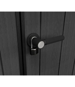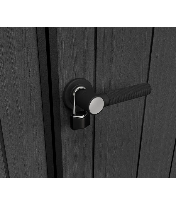 Durch das Oberlicht und die Seitenfenster ist für eine ideale Lichtversorgung ohne Strom gesorgt. Mit besseren Lichtverhältnissen machen die Tätigkeiten noch mehr Spaß. So können Sie problemlos auch präzise Arbeiten in Ihrem Kunststoffgerätehaus Oakland von Keter erledigen ohne Ihre Augen zu sehr anstrengen zu müssen. Dank der großzügigen Doppeltüren haben Sie sogar die Möglichkeit große und sperrige Geräte im Keter Gerätehaus unterzubringen. Natürlich wurde auch an die Sicherheit gedacht und die Hütte mit einem Türverschlusssystem aus Edelstahl ausgestattet. Ihr Hab und Gut wird nicht nur vor Wind und Wetter geschützt, sondern auch vor Diebstahl. Außerdem befindet sich eine praktische Entlüfftung im Giebel.