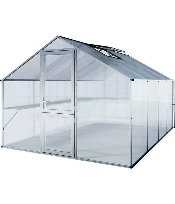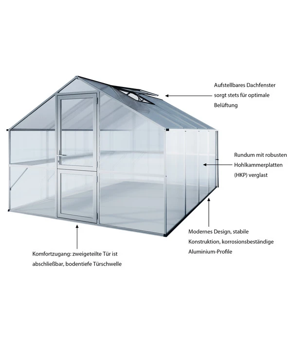Ein Gartengewächshaus mit einer Grundfläche von mehr als 12 m² nimmt einerseits eine gewichtige Rolle im Rahmen Ihrer Gartengestaltung ein und muss andererseits höchste Qualitätsansprüche erfüllen. Schließlich wollen Sie damit nicht jahre-, sondern eher jahrzehntelang zufrieden sein. Wie gut, dass das KGT Gewächshaus Tulpe IV Ihnen genau das bieten kann. Als Spitzenmodell des Markenherstellers genügt es mit seiner extra dicken Verglasung – 16-mm-Hohlkammerplatten aus hochbruchfestem Polycarbonat – höchsten Ansprüchen und verfügt somit über beste Wärmeisoliereigenschaften. Die Doppelstegplatten sind serienmäßig mit einem ‚Longlife‘-UV-Schut versehen, der ein vorzeitiges Altern verhindert. Selbstverständlich ermöglicht deren gute Lichtdurchlässigkeit ein optimales Pflanzenwachstum, während dank der intelligenten Lichtbrechung ein Brennglas-Effekt vermieden wird. Die stabile Konstruktion Ihres neuen Garten-Hobbyraumes stellen hochwertige, korrosionsbeständige Aluminiumprofile sicher. Entscheiden Sie sich mit dem KGT Gewächshaus Tulpe IV für ein Premiumprodukt, das auch in puncto Funktion keine Wünsche offen lässt!