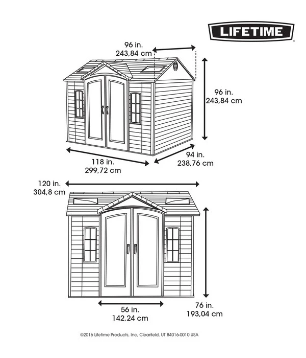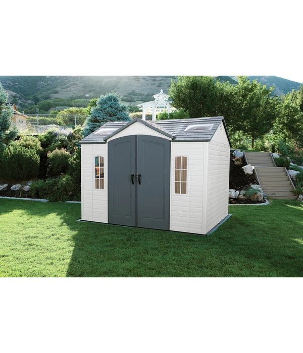 Ganz gleich, ob Sie mit Ihrem Rasentraktor in den Geräteschuppen fahren möchten oder ob Sie einen großen Sack Pflanzerde mit der Schubkarre in das Lifetime Gerätehaus Sky transportieren möchten – dank der großzügigen Tür geht das ohne Probleme.