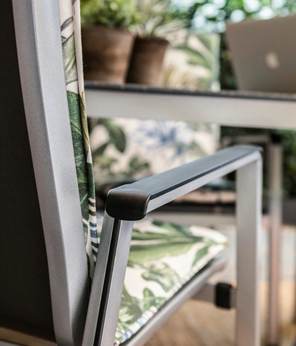 Textilene ist ein innovatives, strapazierfähiges Kunststoffgewebe mit hervorragenden Gebrauchseigenschaften. Es ist witterungsbeständig, atmungsaktiv und pflegeleicht zugleich. Die Gewebefasern sind UV-beständig sowie wasserabweisend und schnell trocknend. Noch ein Pluspunkt für den Alu-Stapelsessel Elements: Das Gewebe ist sehr formstabil. D.h. es geht nach jeder Belastung automatisch wieder in seine Ursprungsform zurück, passt sich andererseits aber perfekt der Körperform an, was für den außergewöhnlichen Sitzkomfort im MWH Alu-Stapelsessel Elements verantwortlich ist.