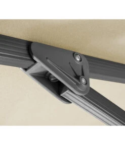 Der Schneider Ampelschirm Rhodos Smart hat ein anthrazitfarbenes, pulverbeschichtetes Gestell aus Aluminium, sodass Sie es unbesorgt draußen im Freien stehen lassen können. Der Sonnenschirm ist außerdem mit einem Kurbelsystem ausgestattet, das Ihnen komfortables und leichtes Öffnen und Schließen des Schirmes erlaubt. Durch Betätigung des Handhebels am Drehgelenk lässt sich der Schirm um 360° drehen, um Ihnen ohne viel Aufwand optimalen Schutz bei fast jeder Sonnenstellung zu geben. Im Lieferumfang zum Schneider Ampelschirm Rhodos Smart ist außerdem ein Plattenständer für 4 Wegeplatten der Größe 50 x 50 cm enthalten, der dem Schirm einen stabilen Stand gibt. Sie müssen also nur die Wegeplatten besorgen und schon ist der Sonnenschirm einsatzbereit.
