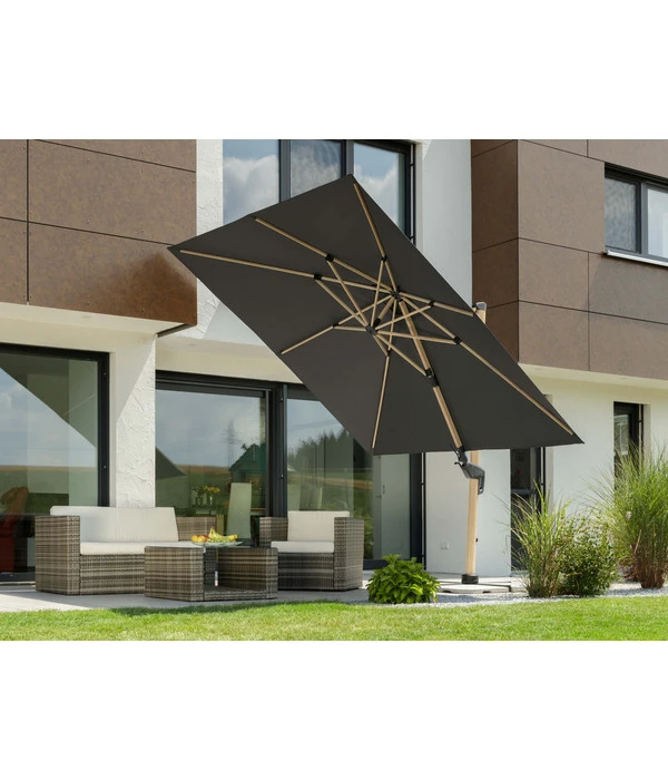 …unter dem Schneider Ampelschirm Rhodos Twist Woody, Anthrazit