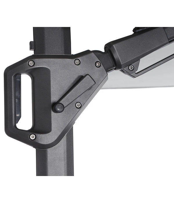 Frei und scheinbar schwerelos schwebt der Siena Garden Ampelschirm Sunset N+ zwischen Himmel und Erde und bietet Ihnen viele Schattenplätze unter seinem Dach. Dank der stattlichen Schirmfläche von 300 x 300 cm und dank des seitlich angebrachten Masts, der Sie den ganzen Platz unter dem Schirm uneingeschränkt nutzen lässt. Für den großen Terrassen-Essplatz, für die Liegestühle, für den Pool oder was immer Sie beschatten möchten. Aber die Sonne verändert doch fast stündlich ihren Stand am Himmel, sagen Sie? Kein Problem für den Siena Garden Ampelschirm Sunset N+, denn er dreht und neigt sich so, dass Sie nahezu immer seinen Schatten genießen können. Im Klartext heißt das: Sie können den Schirm mit Hilfe eines Fußpedals um 360° drehen, die Schirmfläche entlang des Masts 8-fach neigen und bei Bedarf mit einem Hebel beidseitig auch noch um ca. 90° schwenken. Dabei werden Sie optimal von einem Fußpedal und einer Kurbel unterstützt. Genießen Sie bald an schönen Sommertagen das angenehme Klima unter dem Siena Garden Ampelschirm Sunset N+!
