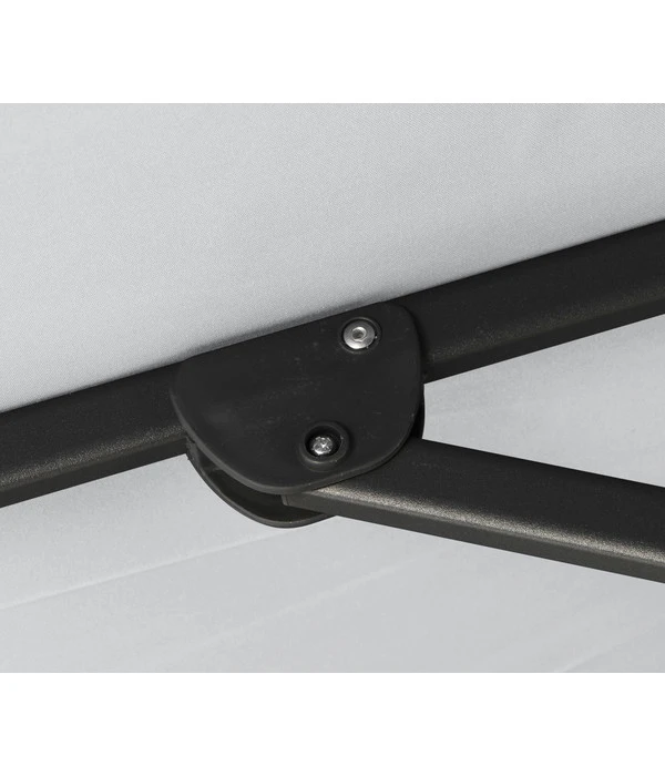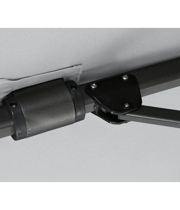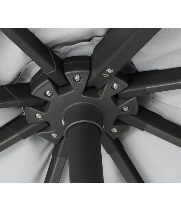 Der Schirm, der auf dem stabilen, wetterfesten Mast des Siena Garden Ampelschirm Sunset N+ schwebt, besteht aus einer besonders hochwertigen, dichtgewebten Polyester-Qualität (300g/m²), die Ihnen einen ausgezeichneten UV-Schutz von 50+ bietet. Zusätzlich wurde der Stoff mit Polyurethan beschichtet, sodass die Schirmfläche wasserabweisend ist. Das Aufspannen des großen Schirms gelingt dabei leicht mit einer robusten Aluminiumgusskurbel, vertikal kippen können Sie ihn über einen handlichen Schiebegriff. Das horizontale Kippen erfolgt durch einen Hebel. Die selbstspannenden Streben sorgen immer für einen faltenfreien und gleichmäßig gespannten Bezug.