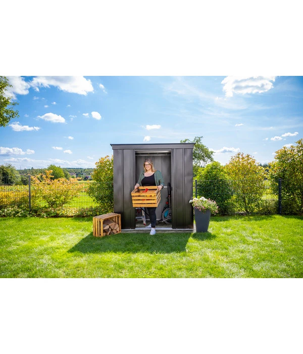 Das Spacemaker Metallgerätehaus eine ideale Lösung, Ihre Gartengeräte oder den Grill direkt dort zu lagern, wo sie gebraucht werden. Aufräumarbeiten nach getaner Gartenarbeit oder der spontane Grillabend sind dadurch leicht zu bewerkstelligen.In Inneren des Spacemaker Metallgerätehauses finden nicht nur die typischen Gartenwerkzeuge wie Schaufel und Spaten, Harke und Rasenbesen Platz, auch ein Rasenmäher und diverse Gartenhelfer wie eine elektrische Heckenschere oder eine Kettensäge zum Schneiden des Kaminholzes passen bequem hinein. Ja, sogar ein Rasentraktor kann dank der breiten Doppeltür in dem robusten Spacemaker Metallgerätehaus Unterschlupf finden und Schlechtwetterperioden im trockenen Zustand locker überstehen.