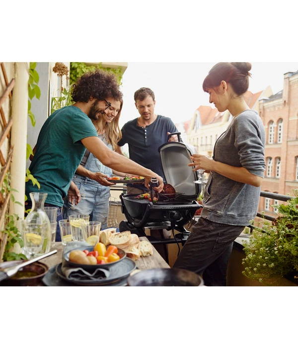 Er passt auf den Stadtbalkon so gut wie auf Ihre heimische Terrasse, denn Ihr neuer Weber Elektrogrill Q 2400 Stand braucht erstaunlich wenig Platz. Obgleich er mit einer Grillfläche von 54 x 39 cm brilliert. Dank seines großen Hitzeelements mit 2200 Watt Leistung produziert der Weber Elektrogrill Q 2400 Stand ausreichend Hitze, um Ihre Speisen bestmöglich zu grillen. Dank höherem Deckel findet sogar größeres Grillgut darunter Platz. Dabei sorgt der Hitzereflektor für eine optimale Wärmestrahlung von oben, während der porzellanemaillierte, zweigeteilte Grillrost die Wärmestrahlung von unten perfekt verteilt. Die letzten Handgriffe erledigen Sie bequem auf den praktischen Seitentischen und natürlich steht dort während des Grillens Ihr kühles Getränk!
