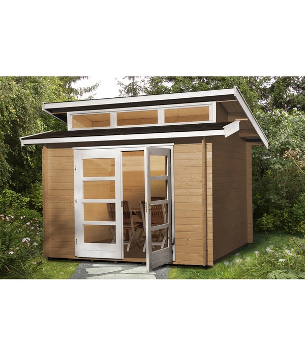 Sie spielen mit dem Gedanken, sich ein Gerätehaus für den Garten anzuschaffen, ein Allerweltshaus kommt für Sie aber nicht in Frage? Dann schauen Sie sich das Gartenhaus 158 der Marke Weka an! Es ist ein architektonisches Juwel, das optisch alle Register zieht und moderne Formensprache mit funktionellen Details verbindet. Das Hervorstechendste ist natürlich das versetzte Satteldach, das für die innovative Optik sorgt und durch mehrere Oberlichter besonders viel Tageslicht hineinlässt. Ergänzt wird die ausgezeichnete Ausstattung durch die Panorama-Doppeltür mit den horizontal ausgerichteten Fenstern, die ebenfalls Licht ins Haus lassen und Ihnen von innen einen guten Blick auf Ihr grünes Paradies erlauben. Setzen Sie mit dem Gartenhaus 158 von Weka ein persönliches Statement und freuen sich jeden Tag aufs Neue an dem Anblick des ganz und gar nicht alltäglichen Gartenhauses.