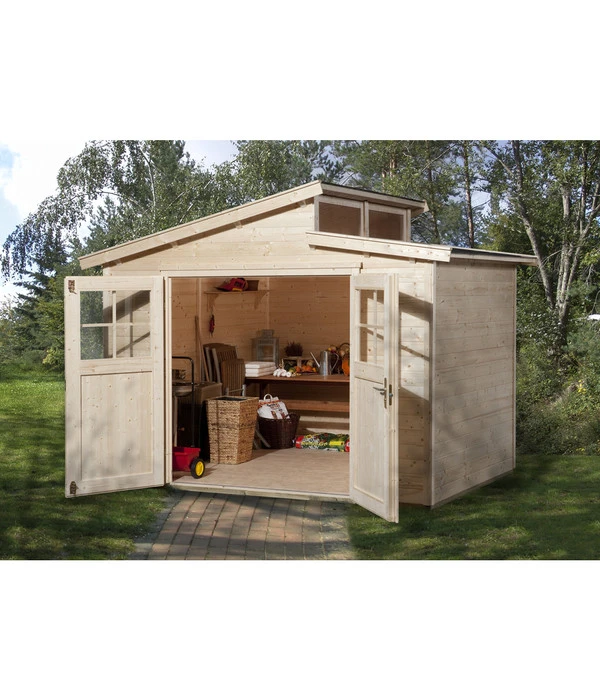 Doch nicht nur die Qualität überzeugt beim Weka Gartenhaus 226 Gr. 3, auch optisch weis es aufgrund des versetzten Daches zu überzeugen. Besonders praktisch ist zudem die ausladende Doppeltüre, mit der sich auch große Gartengeräte bequem im Inneren unterbringen lassen. Überzeugen Sie sich selbst vom hübschen Weka Gartenhaus 226 Gr. 3 und kaufen Sie es sich noch heute!