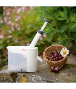 Mit dem Westmark Kirschentkerner werden Rezepte mit frischen Kirschen zum Kinderspiel. Der Kirschentkerner zeichnet sich durch sein großes Fassungsvermögen aus. Dank der praktischen Schütte können Sie problemlos eine Vielzahl von Kirschen auf einmal entkernen. Die Früchte rutschen einzeln in die Rutsche, und mit dem Stößel entfernen Sie mühelos die Kerne, ohne sich die Hände schmutzig zu machen. Der transparente Kern-Auffangbehälter ermöglicht eine einfache Entleerung und lässt sich gut reinigen. Selbstgemachte Kirschgrütze und Kirschkuchen sind der Inbegriff von Genuss und Sommer. Ihre Familie und Freunde werden von den köstlichen Kreationen begeistert sein.