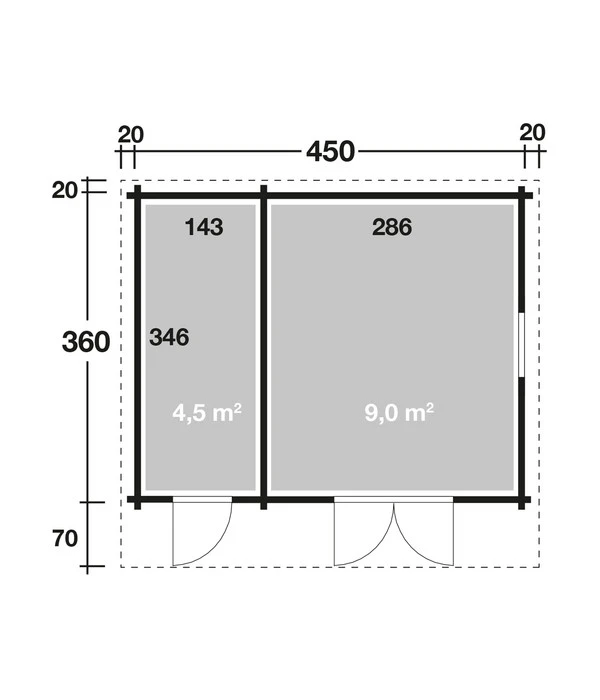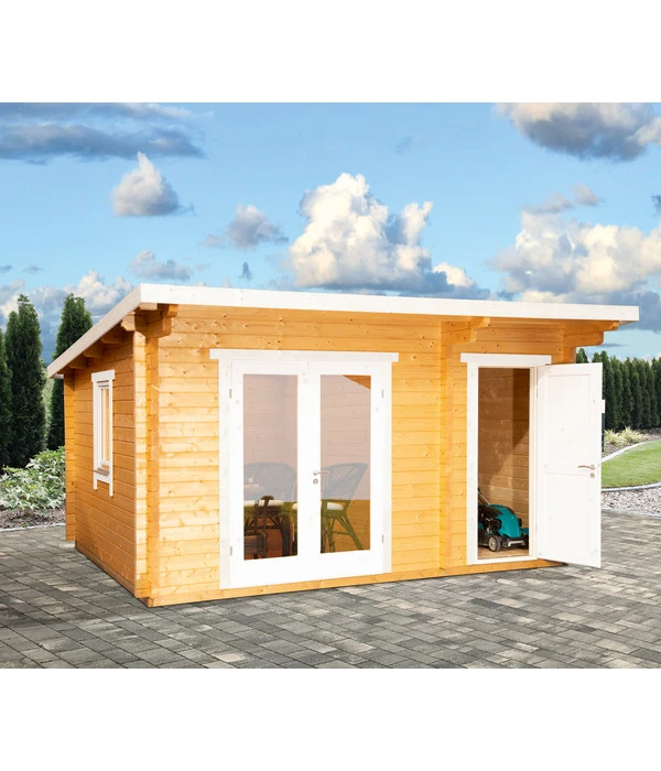 Von den massiven Blockbohlen bis zu dem modernen Pultdach ist das Wolff Finnhaus Gartenhaus Trondheim 70-D/2 ein Premiummodell, das in jeder Hinsicht überzeugt. Optisch und funktional. Das Beste aber: Die Gartenhütte verbirgt im Inneren zwei Räume: einer mit 9 m², in dem Sie mal solo entspannen, mal mit Freunden ausgelassen feiern können; der andere Raum mit 4,5 m² ist der perfekte Abstellraum für Ihre Gartengeräte. Praktisch: Der Abstellraum hat eine separate Tür, so dass Sie den Rasenmäher nicht durch den „Wohnraum“ transportieren müssen. Wenn Sie mehr wollen, als nur ein zweites Wohnzimmer im Grünen, ist das Wolff Finnhaus Gartenhaus Trondheim 70-D/2 das richtige. Wann dürfe wir es Ihnen bringen?
