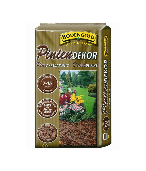 Wir bieten Ihnen Ziegler Bodengold Piniendekor hier in einer Körnung von 7-15 mm an, die sich für die verschiedensten Gartensituationen eignet. Sie können damit die Wurzelscheiben von Bäumen abdecken, aber auch die Erde im Rosenbeet, zwischen Sträuchern und anderen Gartenpflanzen. Da es sich um ein reines Naturprodukt handelt, können Sie Ziegler Bodengold Piniendekor sogar im Gemüsegarten zum Mulchen nehmen. Sehr dekorativ wirkt es auch, wenn Sie damit den Boden Ihrer Kübelpflanzen und der Blumenkästen bedecken. Und natürlich ist damit auch ein ganz praktischer Nutzen verbunden: Der Boden wird vor Austrocknung geschützt, die Pinienrinde unterdrückt Unkraut und im Winter bietet die Mulchschicht Schutz vor Frostschäden.